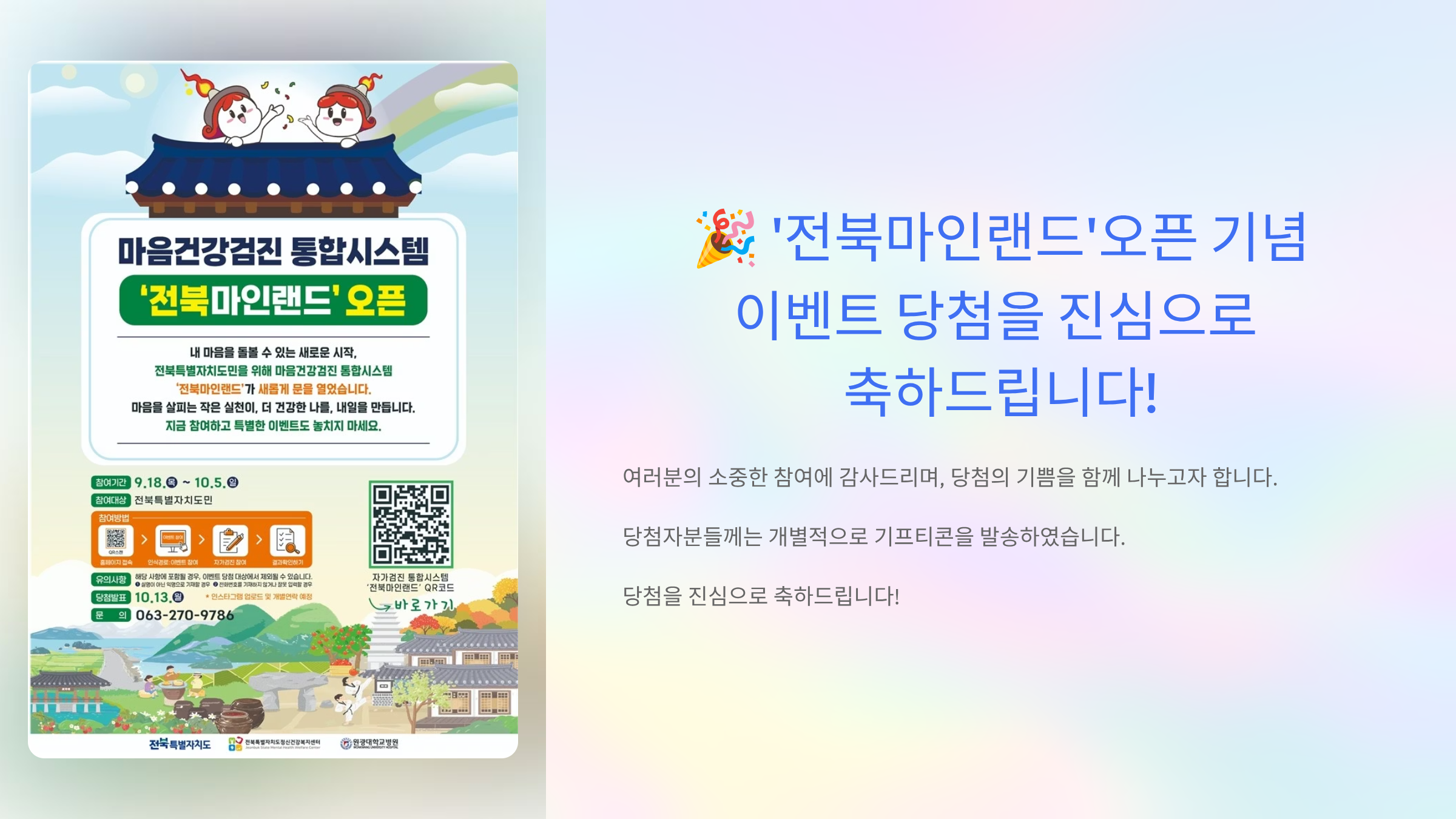 마음건강검진 통합시스템 '전북마인랜드' 오픈 기념 온라인 이벤트 |